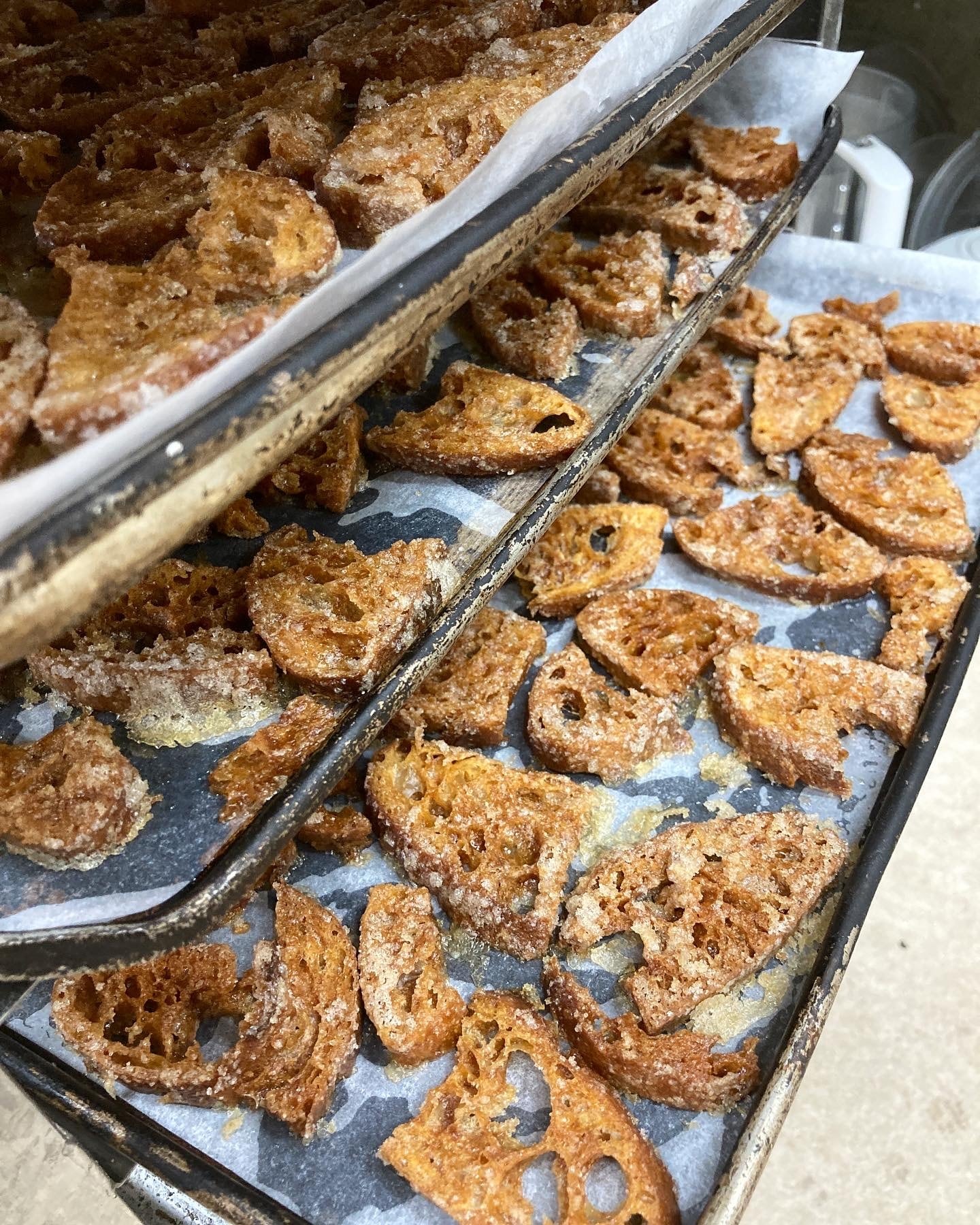 主にハード系のパンを薄く切って、ビートグラニュー糖とバターで2時間ほどしっかり焼き切っています。焼き切ることによって、後味がよい甘さに仕上がりました。堅いものが好きな方、ハマります!